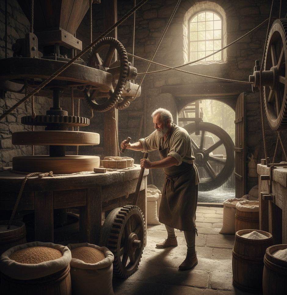 Juan Pérez no era solo un jornalero; su posición le otorgaba un estatus social y una responsabilidad vital. El molinero era el custodio de la tecnología más avanzada de la época, una maquinaria hidráulica que transformaba el grano de los campos de cebada y trigo en la harina necesaria para el pan diario.